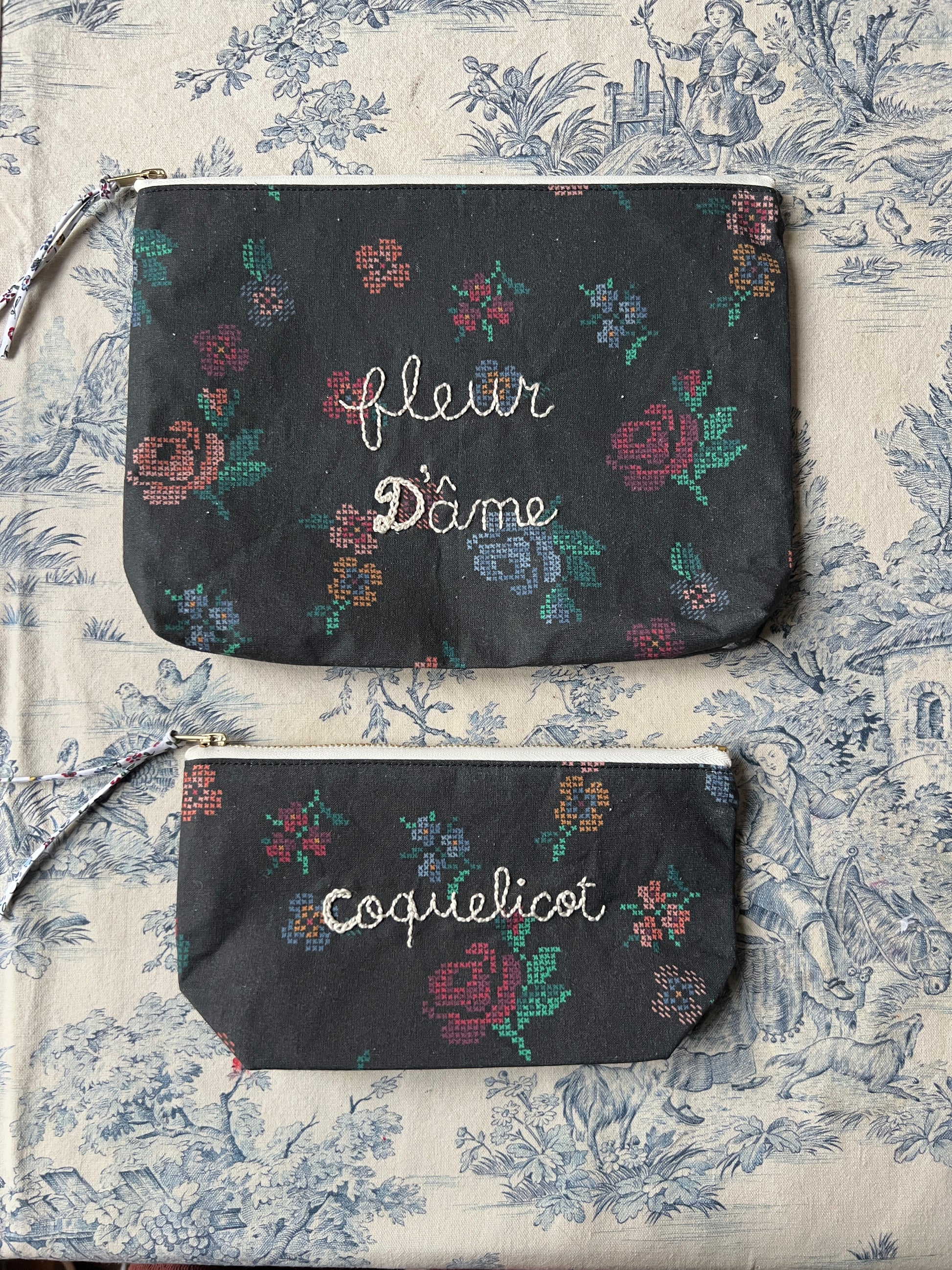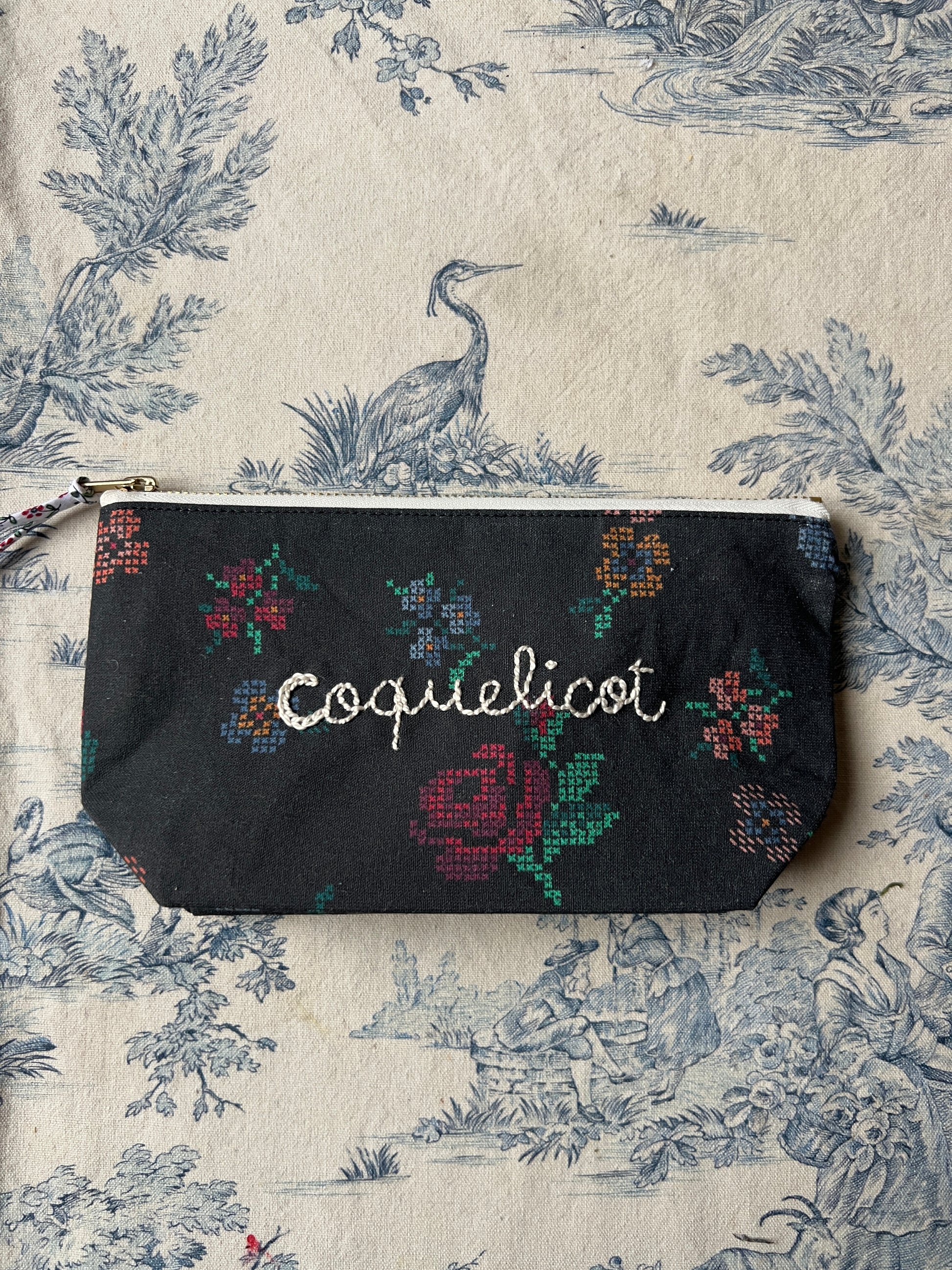 表側には、響きの可愛らしさに惹かれて刺繍した “coquelicot”(コクリコ)。